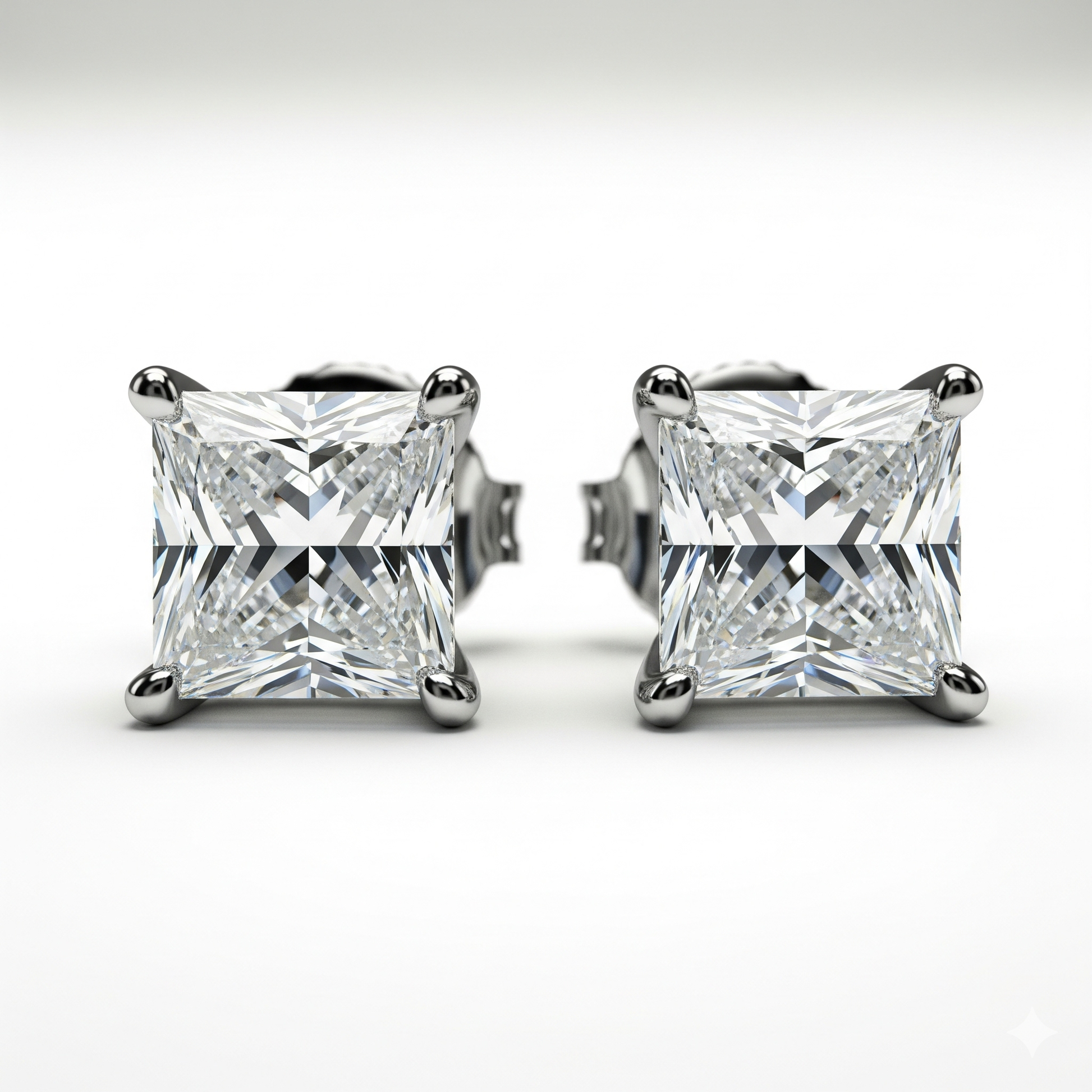IGI Certified 1ct each D VVS2 Lab Grown Diamond Princess Cut Solitaire Studs